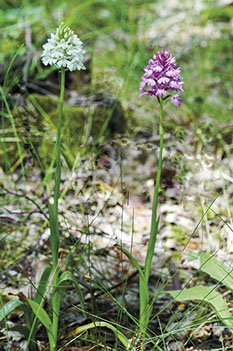 Blütenstand: pyramidenförmig, wenn die obersten Blätter noch geschlossen sind, später verlängert eiförmig, dichtblütig. Deckblätter etwa so lang wie der Fruchtknoten.