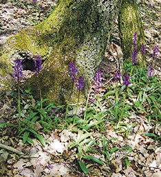 Blätter: rosettig gehäuft, zungenförmig bis breit-lanzettlich, purpur gefleckt oder ungefleckt, wenige lanzettlich-spitze Blätter umfassen den Stängel scheidig.