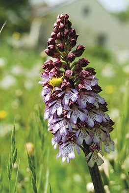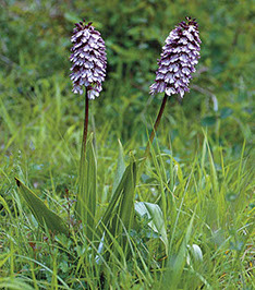 Blütenstand: große, kräftige, dicht- und reichblütige, kegelförmige Ähre. Deckblätter klein, spitz, rosaviolett, wesentlich kürzer als der Fruchtknoten.